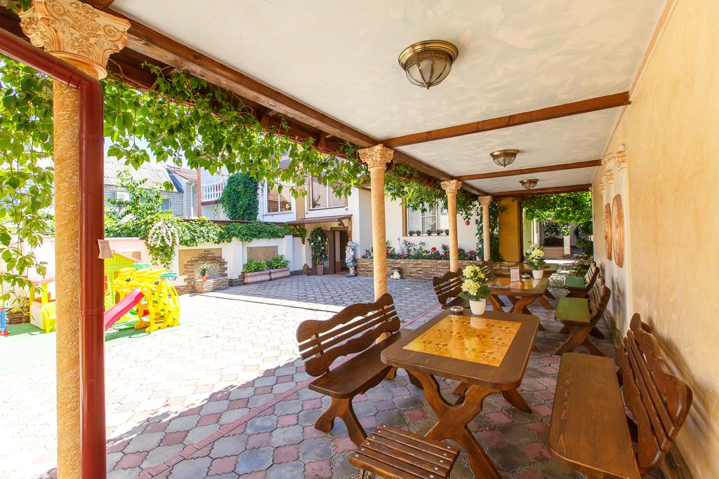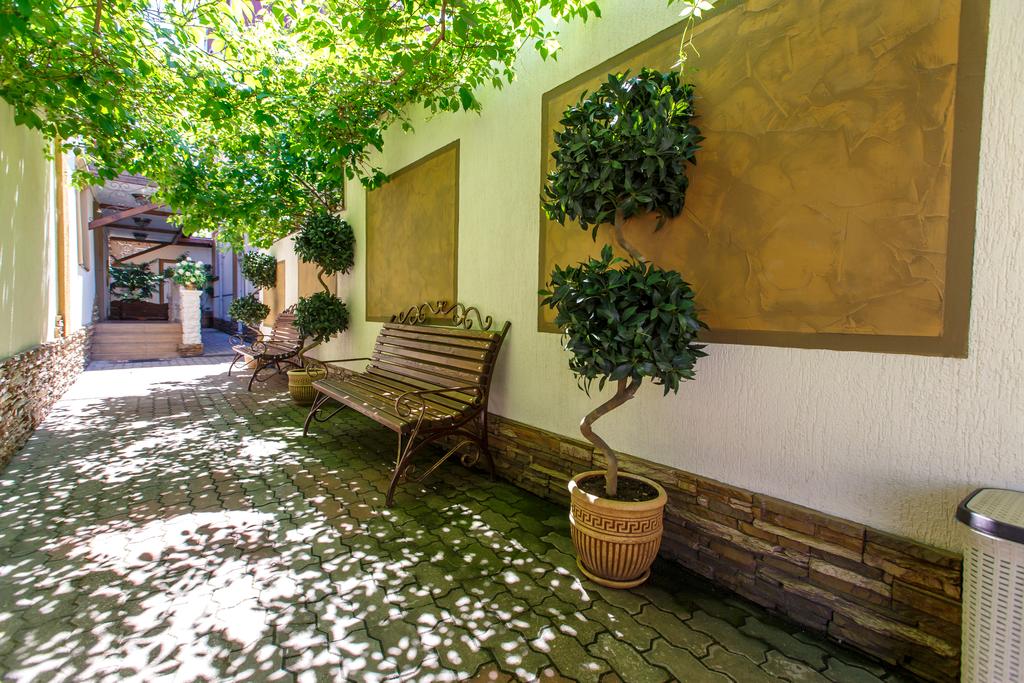 Территория гостевого дома — это ухоженный зелёный двор с зонами отдыха, террасами и оборудованием для барбекю. Здесь же работают продуктовый магазин и столовая, что особенно удобно для самостоятельного отдыха. Предоставляется бесплатный трансфер и помощь в организации экскурсий. Круглосуточная стойка регистрации обеспечивает комфорт в любое время.
