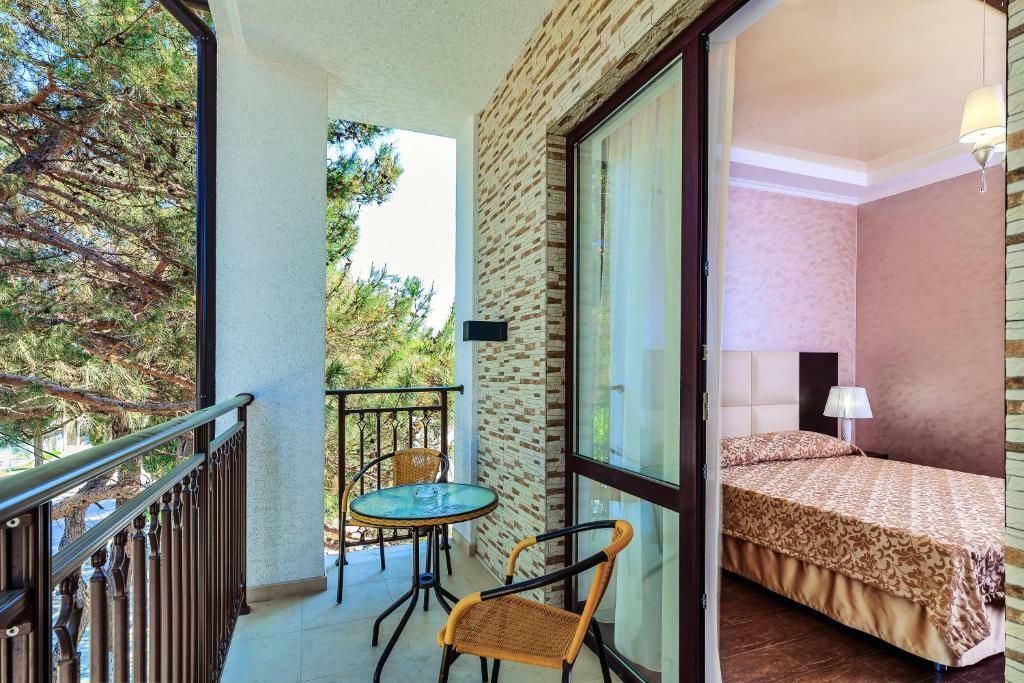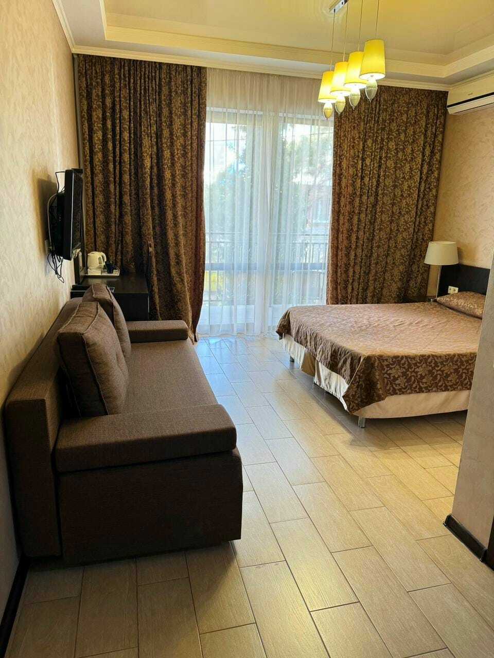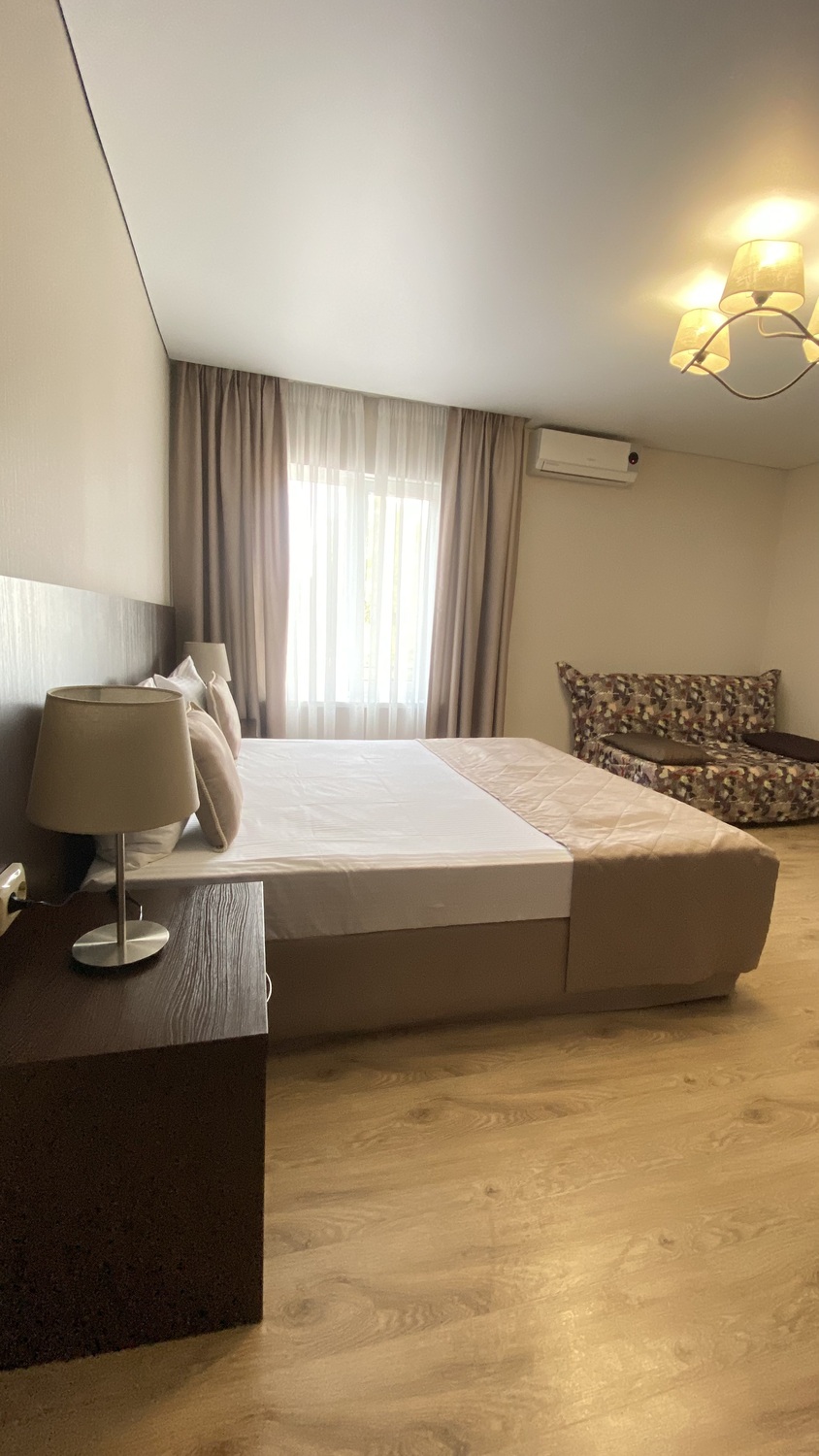 В номерах есть возможность установки одного дополнительного спального места за отдельную плату. К услугам постояльцев санузел, душ в номере. Двуспальная кровать или 2 односпальные,ортопедические матрасы, шкаф, прикроватные тумбочки, туалетный столик, зеркало,сплит-система, холодильник, телевизор, гладильная доска, утюг, сейф, эл. чайник,чайный комплект, фен, полотенца, тапочки, средства гигиены, спутниковое TV, Wi-Fi интернет,плетеная мебель на балконе.