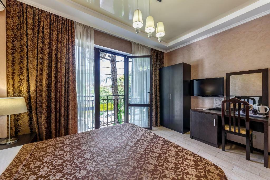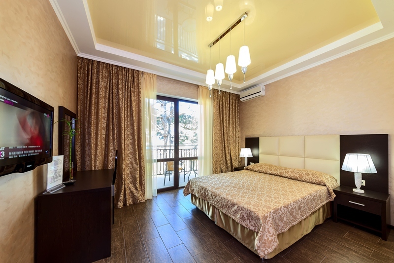 В номерах есть возможность установки одного дополнительного спального места за отдельную плату. К услугам постояльцев санузел, душ в номере. Двуспальная кровать, шкаф, прикроватные тумбочки, туалетный столик, зеркало. Сплит-система, холодильник, телевизор, гладильная доска, утюг, сейф, эл. чайник, посуда, фен, полотенца, тапочки, средства гигиены, французский балкончик, спутниковое TV, Wi-Fi интернет.