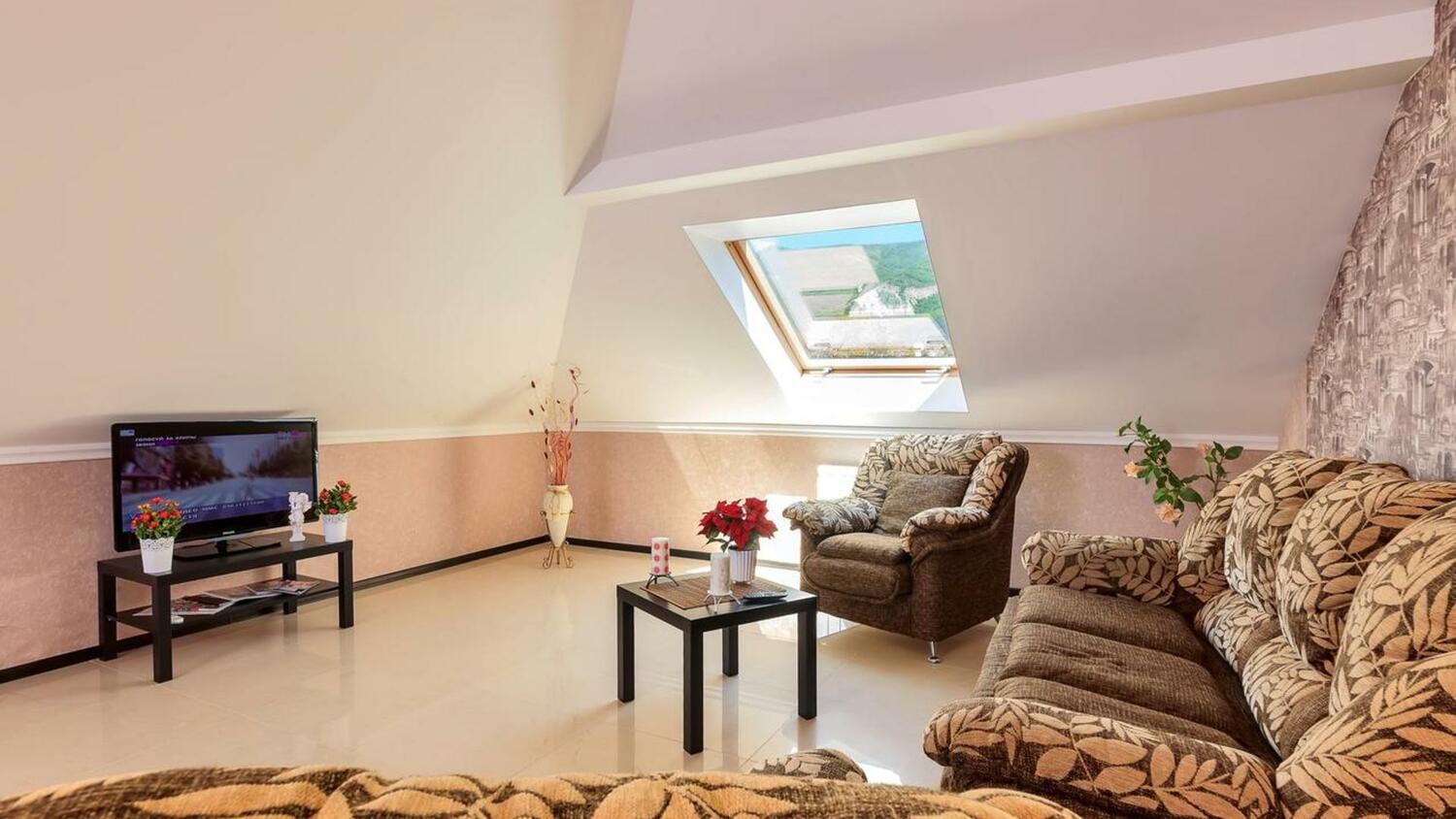 Номерной фонд включает восемь категорий размещения: от компактных стандартных номеров площадью 15–18 кв.м с общей кухней на этаже до просторных двухкомнатных апартаментов на 120 кв.м с собственной кухней, террасой 30 кв.м и тремя телевизорами. Все номера оборудованы сплит-системами с функцией обогрева, холодильниками, телевизорами со спутниковым ТВ и индивидуальными сейфами. В номерах комфорт-класса и выше гостей ждут ортопедические матрасы, электрочайники, чайные комплекты, гладильные доски, тапочки и балконы с плетёной мебелью.