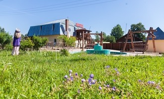 Отдыхающие могут расположиться в деревянных уютных домиках. Гостям базы предлагается трехразовое питание.