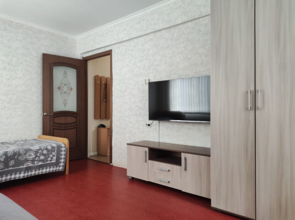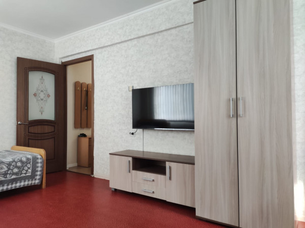 1-но комнатная квартира расположена на 2 этаже 5-ти этажного дома, без лифта, вид из окна на ул Победа, площадь квартиры 40м2, лоджия застекленная, до моря 15 мин пешком по ул Победа или Лазарева. В квартире 4 спальных места (2-х спальный диван, две односпальные кровати), тв, сплит-система, холодильник, газовая плита, Wi-Fi, стиральная машинка-автомат, гладильная доска, утюг. Санузел совмещен (ванная длиной 1,5м), сушилка для белья за окном. Автостоянка платная в 200 м.