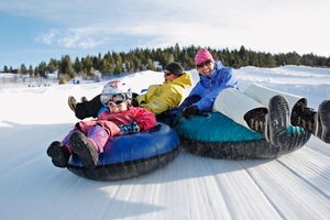 Зимой гостей Донгора ждут лыжные прогулки, катание на Тюбинге (надувные санки).