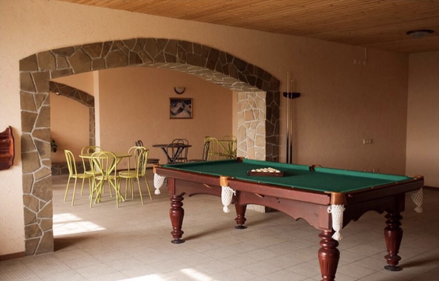 Летом территория превращается в загородную базу отдыха с панорамными верандами, беседками и зелёными зонами. Комплекс располагает небольшой гостиницей: уютные номера вмещают до 4 гостей и оснащены телевизором, холодильником, микроволновой печью, душем и туалетом. Два банкетных зала вместимостью до 35 и до 90 человек идеально подходят для свадеб, корпоративов и семейных торжеств.