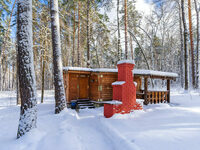 Русская баня готова к приему гостей в течении всего года. Посетив парную, летом можно окунуться в прохладную речку, а зимой нырнуть в ледяную прорубь.