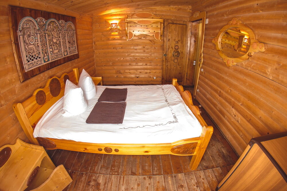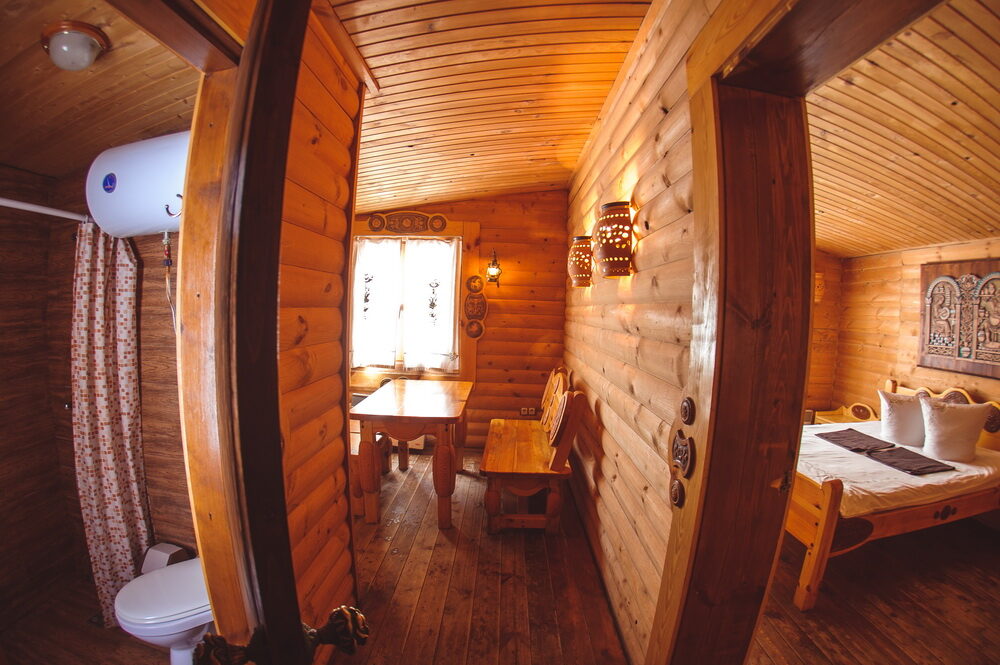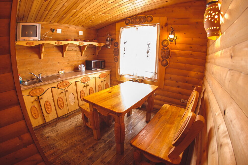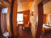 Тематические одноэтажные коттеджи на 4 человека с уникальным дизайном интерьера. Каждый коттедж оформлен в своём стиле: пивной, охотничий, крестьянский, рыбацкий, богатырский, дом лесника. Две спальни, полностью оборудованная кухня. Туалет, душ, столовая, посуда, холодильник, СВЧ-печь, телевизор, гриль-печь, веранда.