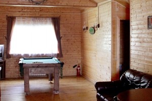 Усадьба - двухэтажный коттедж на берегу реки. Просторный двор с причудливым ландшафтом, банька у самой воды. В распоряжении гостей 7 спален. На первом этаже - 2 спальни с тремя одноместными кроватями и камином, 1 спальня с двухместной кроватью, 2 ванные комнаты с душевыми кабинами и оборудованная кухня (холодильник, посудомоечная машина, микроволновая печь, газовая панель, эл. чайник и вся необходимая посуда). На втором этаже - 2 спальни с двухместными кроватями, 2 спальни с 4-я одноместными кроватями, 2 ванные комнаты с санузлом и раковиной, уютный холл с бильярдом, мягкой мебелью и телевизором, есть выход на балкон. Банька у «Усадьба» по размерам меньше, чем у «Дачи», но также имеет удобную гостиную и парную с двумя режимами работы.